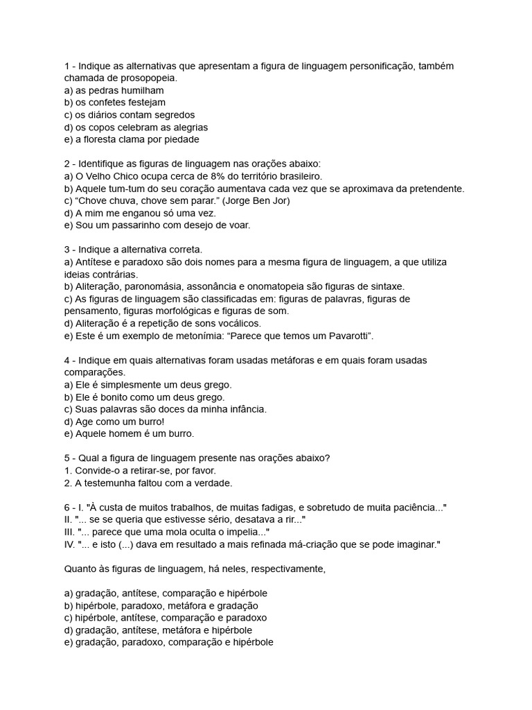 5 - Qual a figura de linguagem presente nas orações abaixo?
