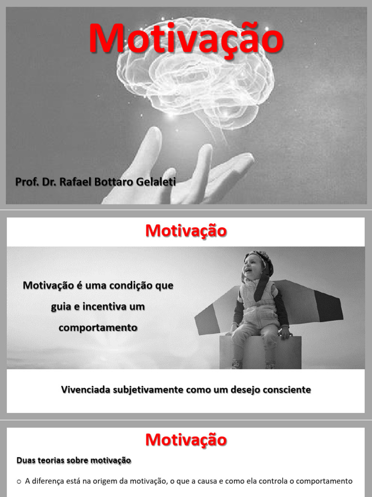 o Motivação direciona o comportamento para um incentivo particular que produz prazer ou
