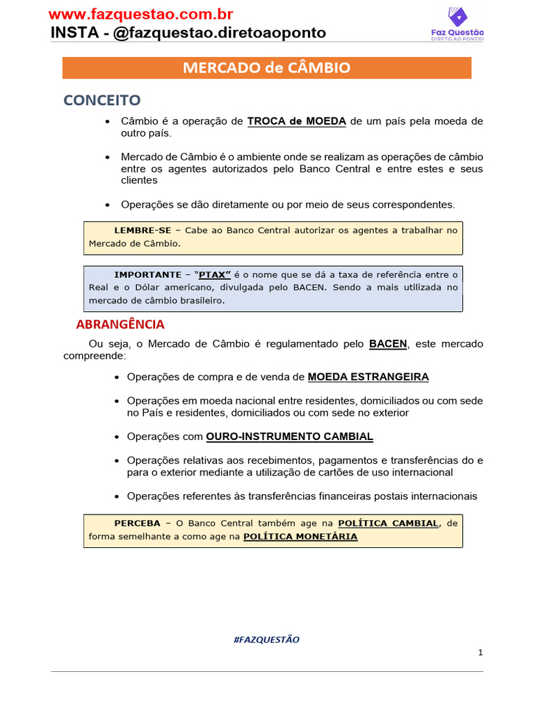 Mercado de Câmbio.