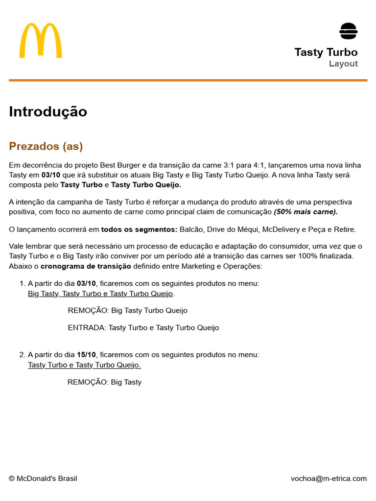Em decorrência do projeto Best Burger e da transição da carne 3:1 para 4:1, lançaremos uma nova linha