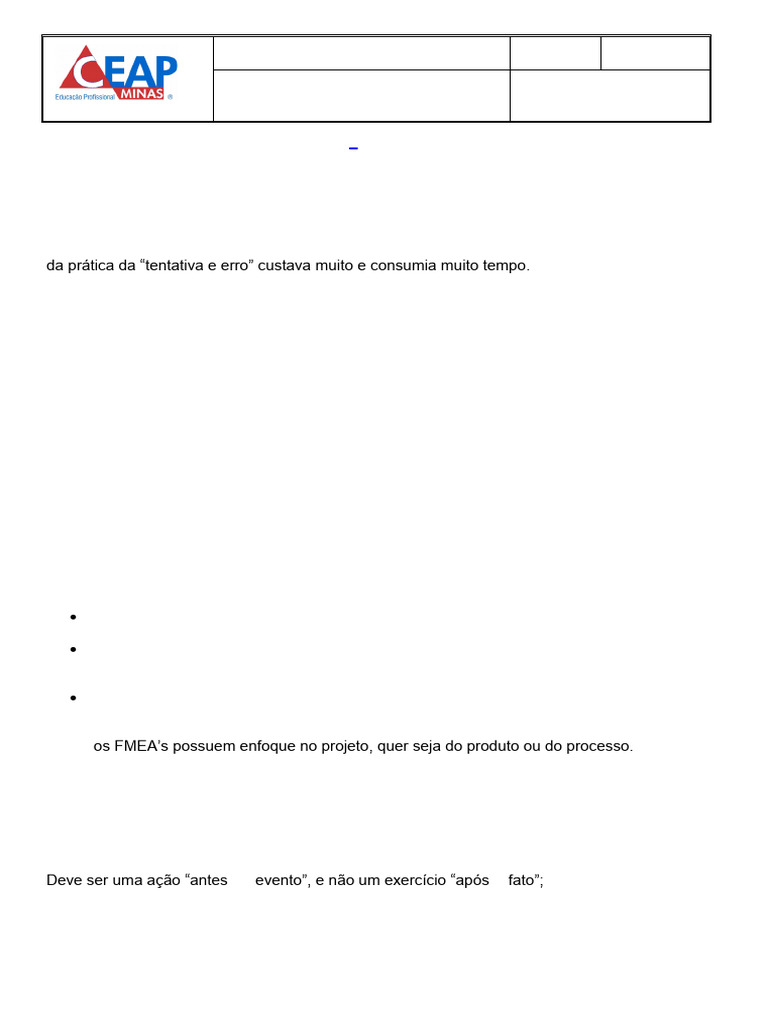 Reconhecer e avaliar a falha potencial de um produto/processo e os efeitos desta falha,
