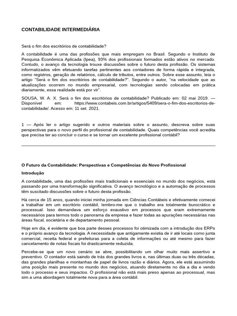 SOUSA, W. A. X. Será o fim dos escritórios de contabilidade? Publicado em: 02 mai 2019. —