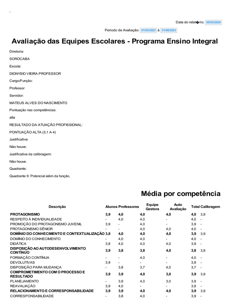 Periodo de Avaliação: 01/02/2023 à 31/08/2023