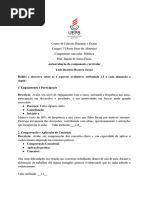 2 – Faça uma reflexão sincera a respeito da disciplina e sua participação nela; Desabafe a