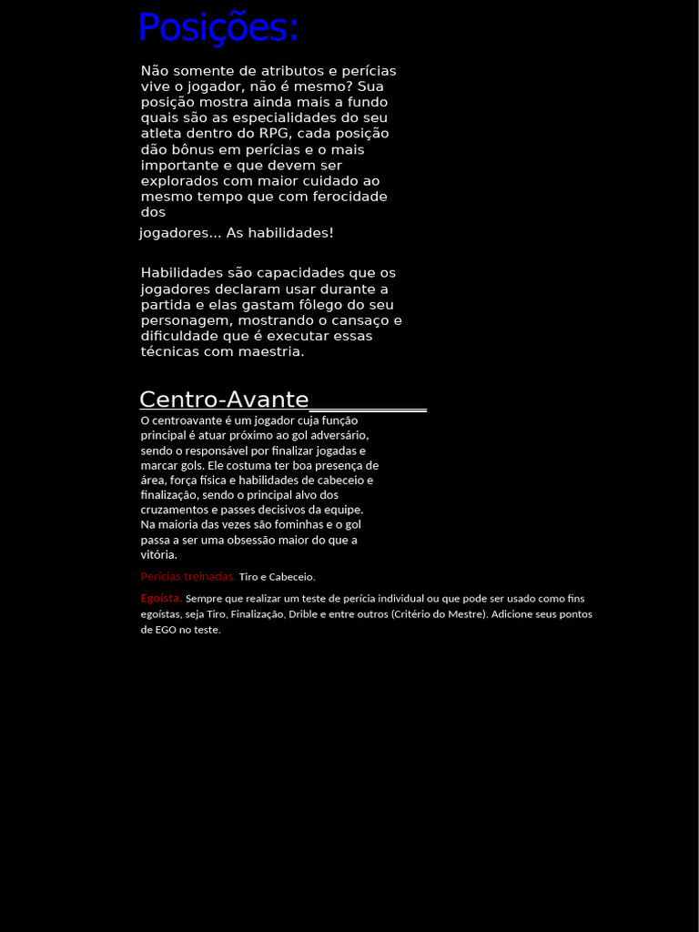 de passar pelos seus adversários de forma ágil para Perícias treinadas. Cabeceio e Dividida.