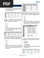 Ao ser aplicada clula E6 a frmula: =SE(MDIA(B1;D5)>MXIMO(B1:D1);A1;MDIA(B1;D 2)), obtm-se como resultado o seguinte valor: A) 1 B) 2 C) 2,5 D) 4 97) (DOM CINTRA 2010 MAPA) Suponha que no MS Excel existam os seguintes valores nas seguintes clulas: B10 = 5; F5 = 1; F6 = 2; F7 = 3; F8 = 4; G1 = 6. Admita ainda que o cursor esteja na clula B9. O resultado apresentado, ao ser utilizada a seguinte funo =SOMA(B10;F5:F8;G1), na clula B9 ser: A) 21; B) 12; C) 16; D) 15; E) 6.