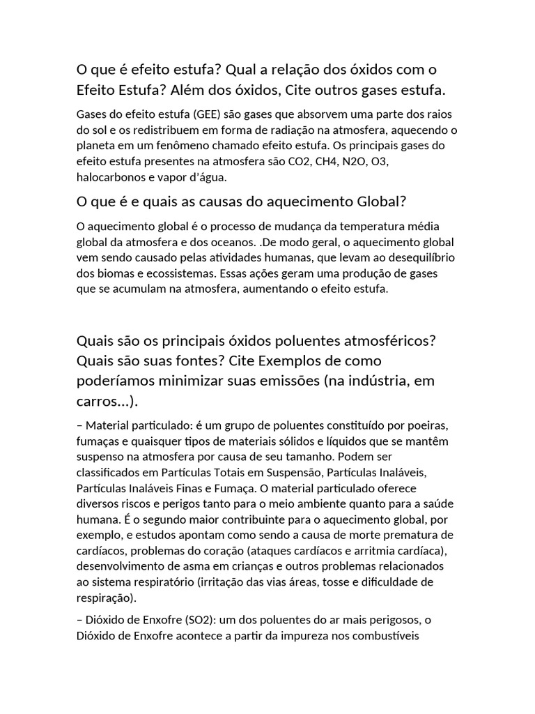 Efeito Estufa? Além dos óxidos, Cite outros gases estufa.