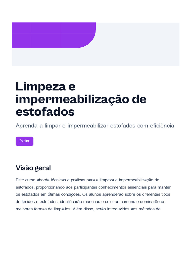 Este curso aborda técnicas e práticas para a limpeza e impermeabilização de
