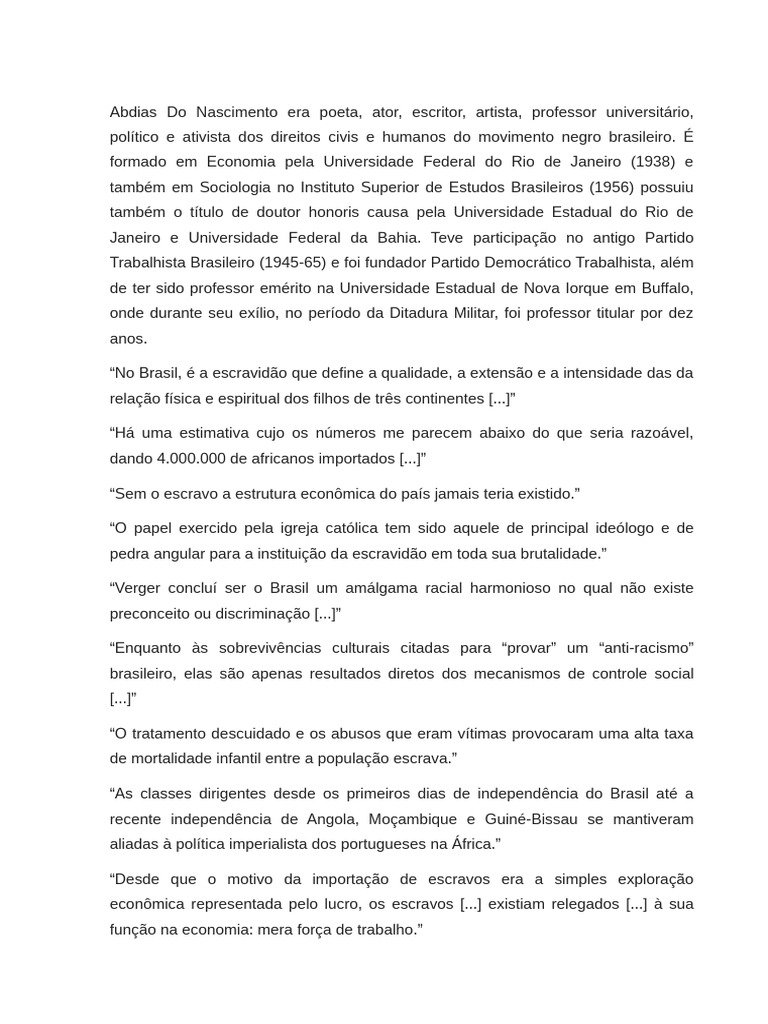 NASCIMENTO, Abdias. O genocídio do negro brasileiro: processo de um racismo