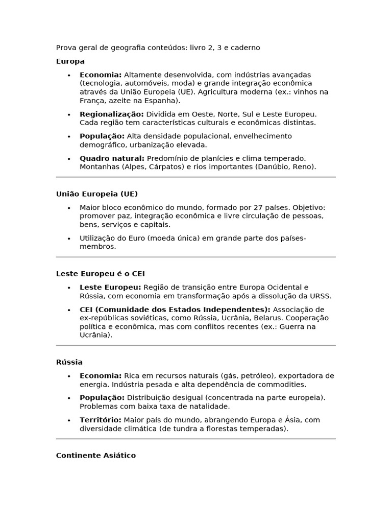 Prova geral de geografia conteúdos: livro 2, 3 e caderno