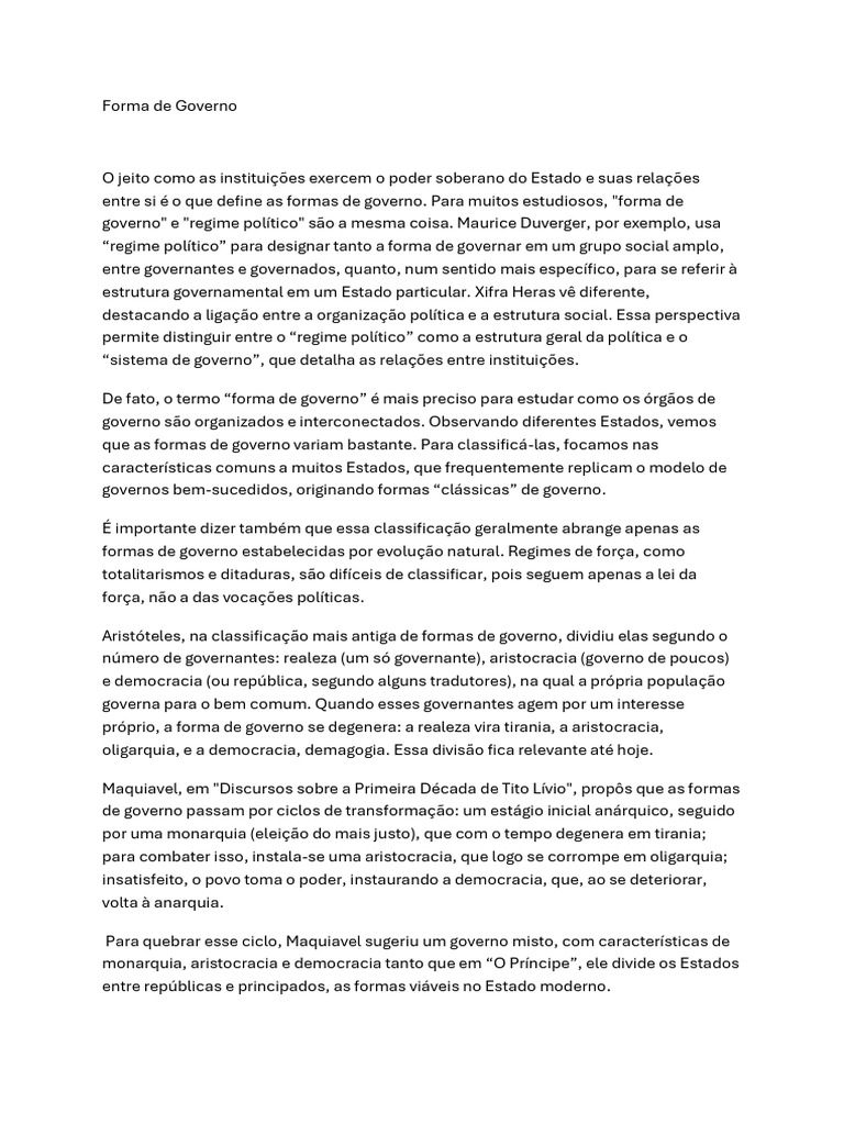 que as formas de governo variam bastante. Para classificá-las, focamos nas