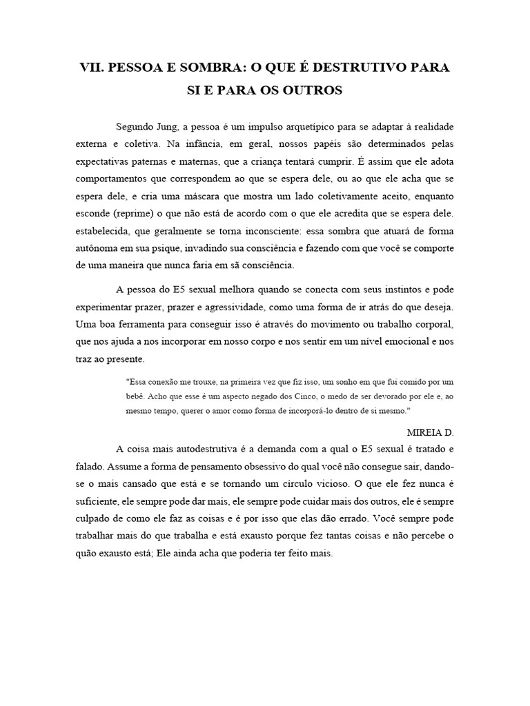 PESSOA E SOMBRA: O QUE É DESTRUTIVO PARA