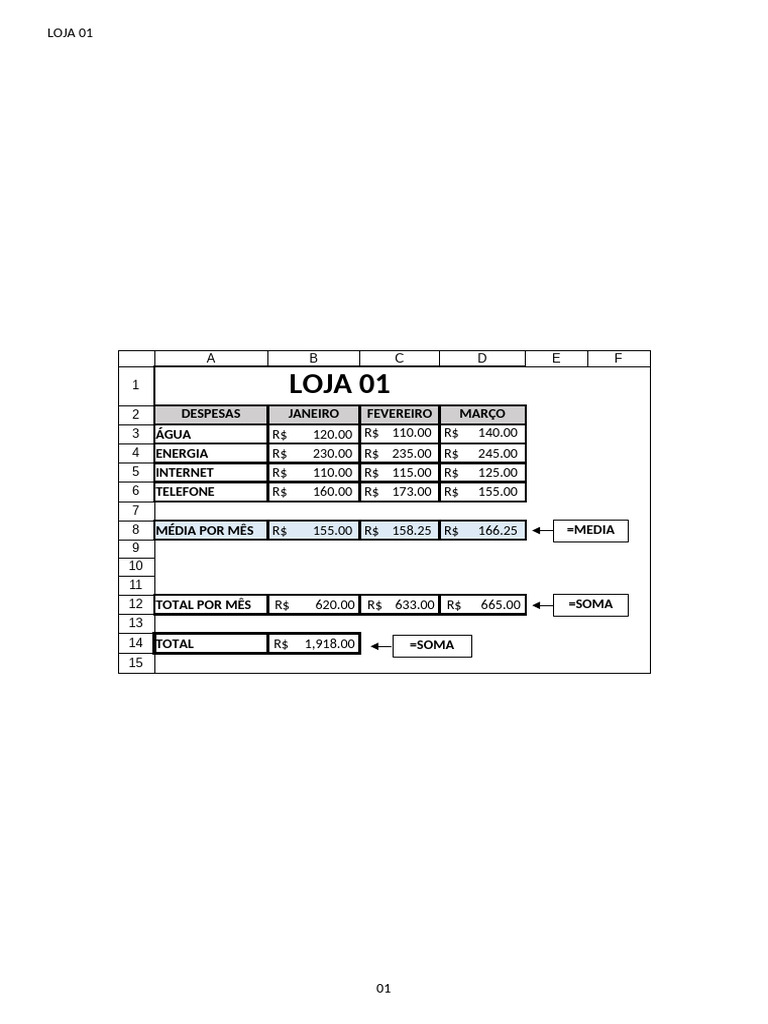 12 TOTAL POR MÊS R$ 620.00 R$ 633.00 R$ 665.00 =SOMA