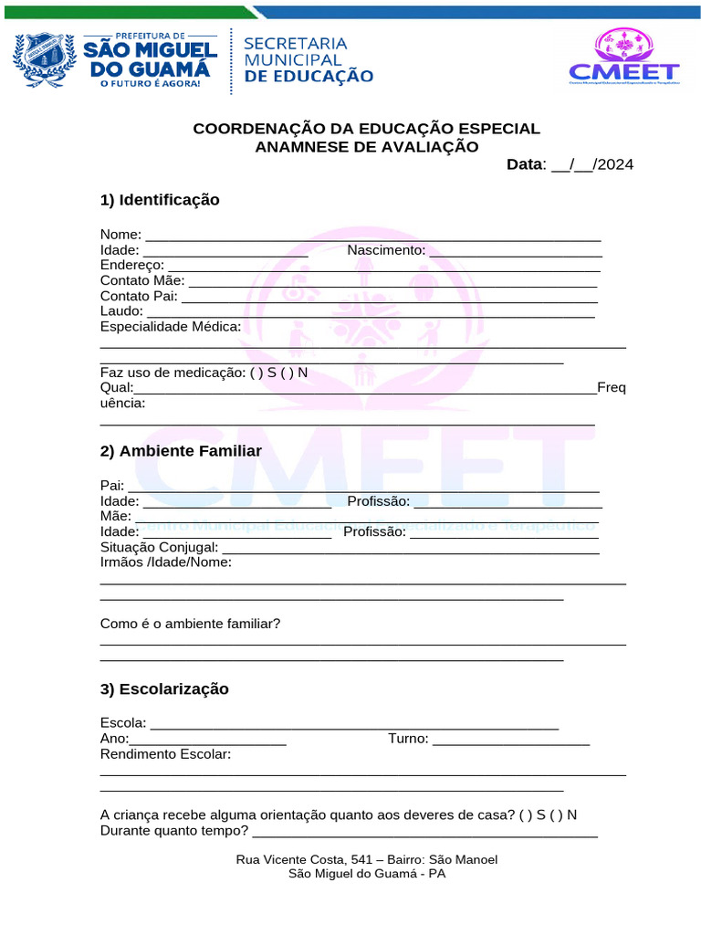 ANAMNESE DE AVALIAÇÃO