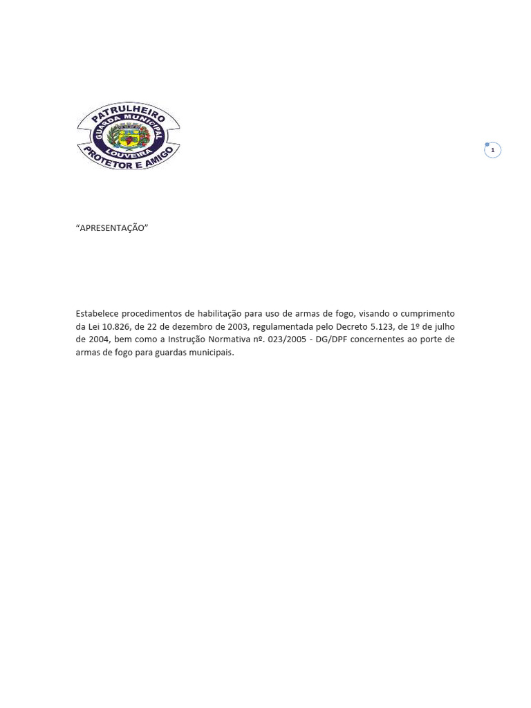 de 2004, bem como a Instrução Normativa nº. 023/2005 - DG/DPF concernentes ao porte de