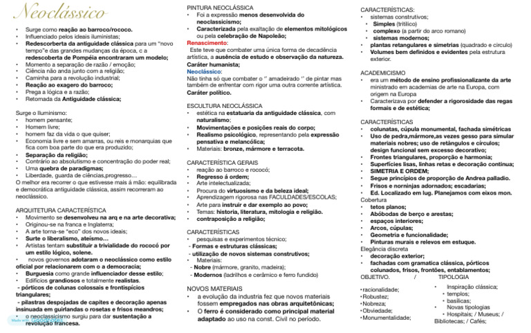 neoclássico. • Aprendizagem rigorosa nas FACULDADES/ESCOLAS; Cobertura