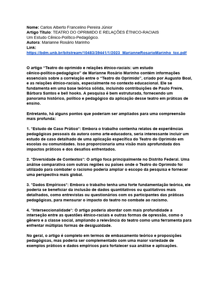 Artigo Título: TEATRO DO OPRIMIDO E RELAÇÕES ÉTNICO-RACIAIS