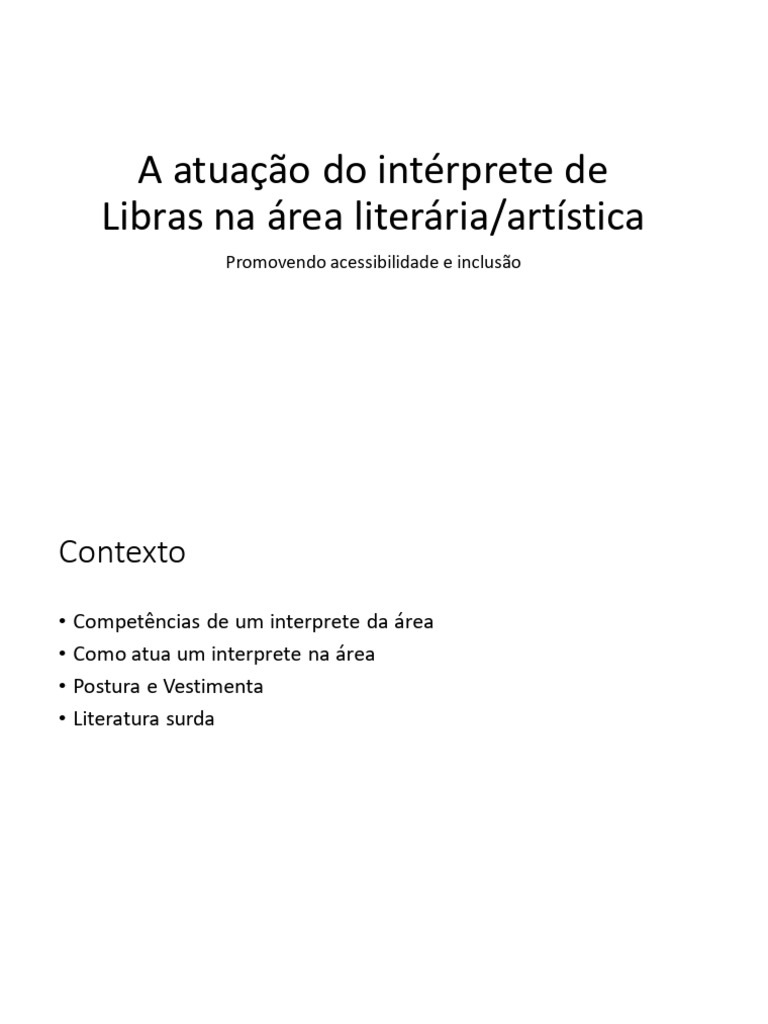 • Domínio da Língua Brasileira de Sinais (Libras) •Amplo conhecimento sobre literatura e arte,