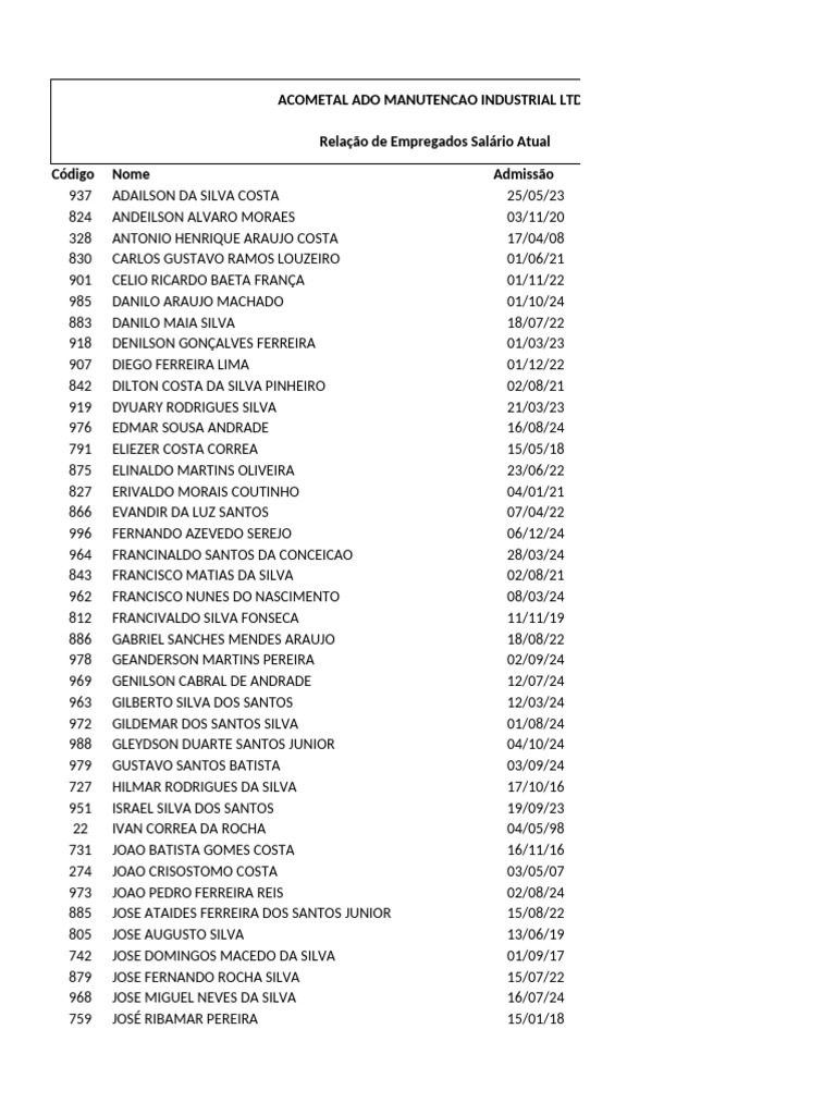 Relação de Empregados Salário Atual