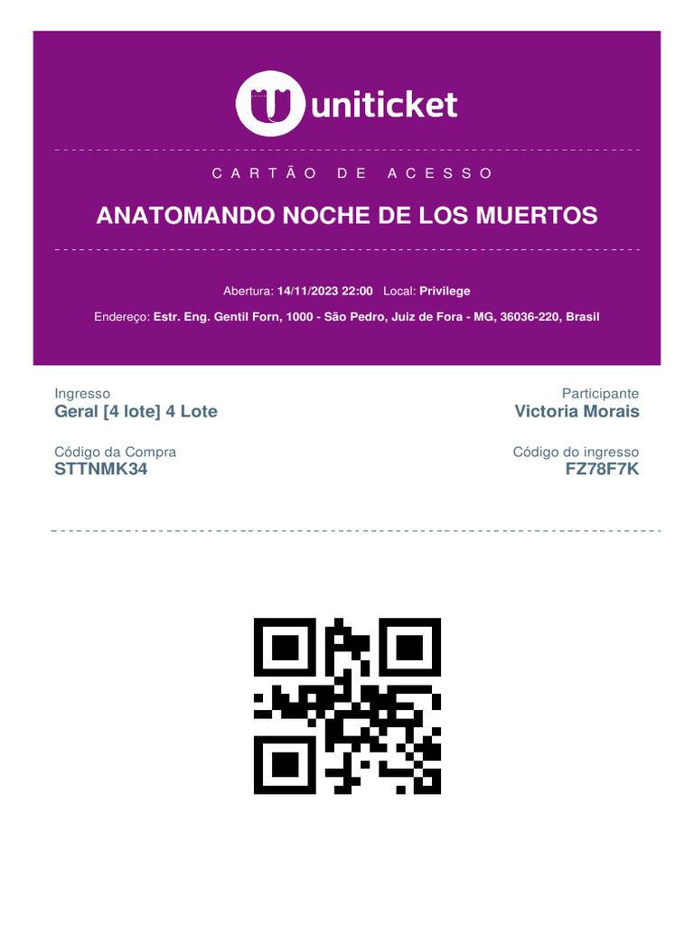 Você está recebendo apenas um ingresso da compra FZ78F7K. Este ingresso
