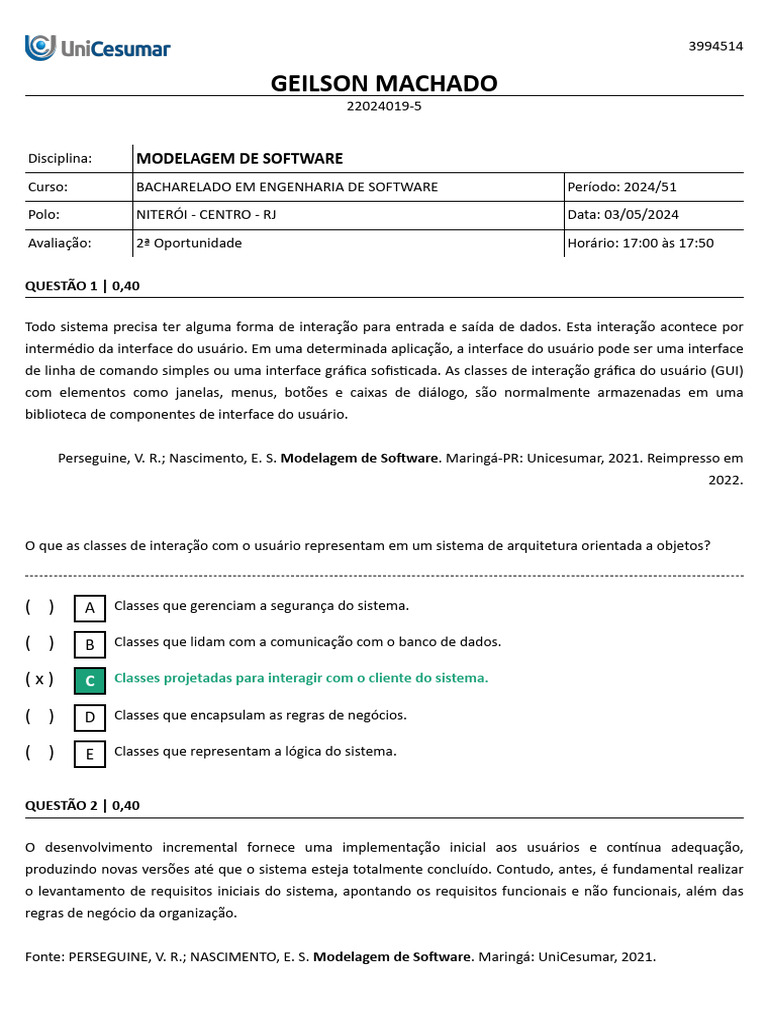 Perseguine, V. R.; Nascimento, E. S. Modelagem de Software. Maringá-PR: Unicesumar, 2021. Reimpresso em