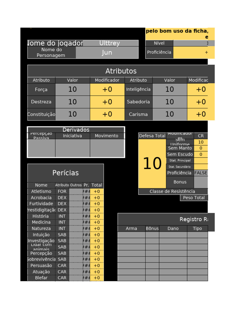 Destreza 10 +0 Sabedoria 10 +0