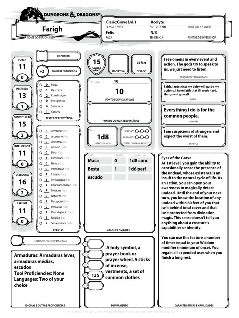 NOME DO PERSONAGEM RAÇA TENDÊNCIA PONTOS DE EXPERIÊNCIA