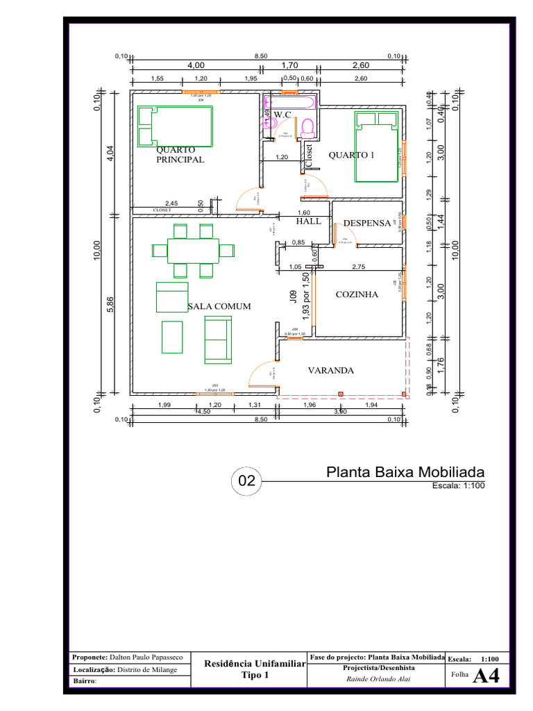 Proponete: Dalton Paulo Papasseco Fase do projecto: Planta Baixa Mobiliada Escala: 1:100
