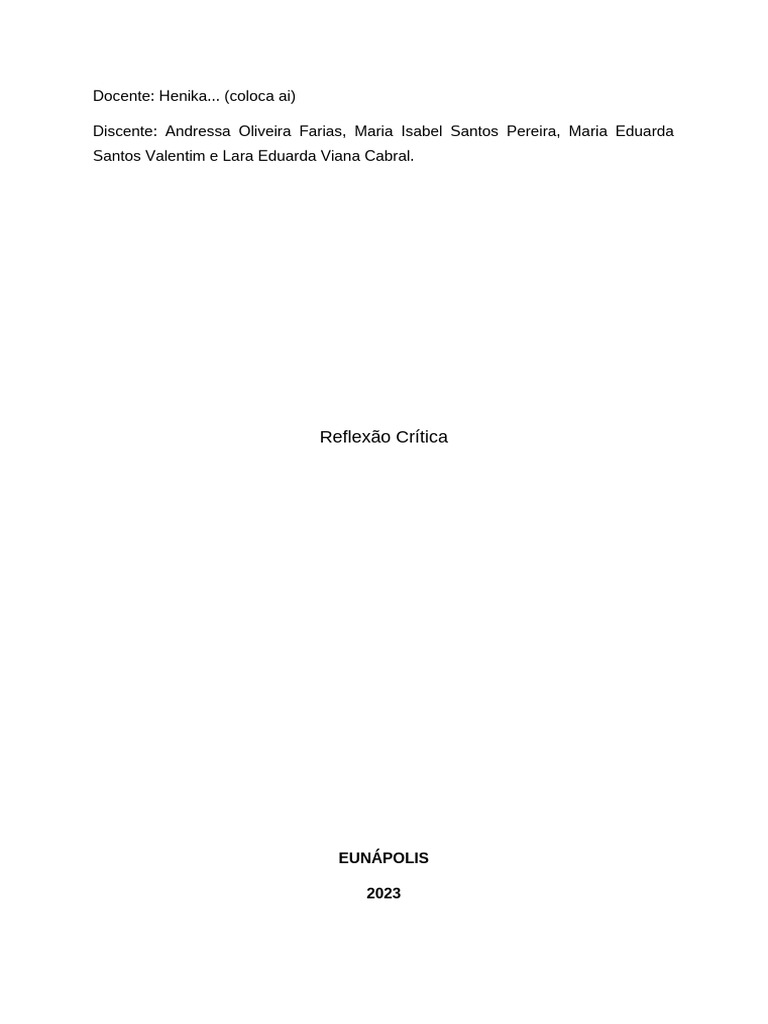 Discente: Andressa Oliveira Farias, Maria Isabel Santos Pereira, Maria Eduarda