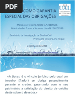 A fiança é uma garantia pessoal prestada por um terceiro,