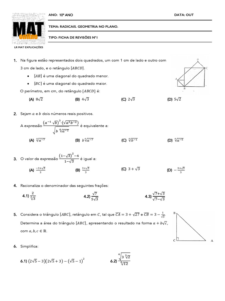 TEMA: RADICAIS. GEOMETRIA NO PLANO.