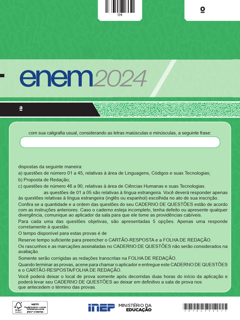 PROVA DE LINGUAGENS, CÓDIGOS E SUAS TECNOLOGIAS E REDAÇÃO
