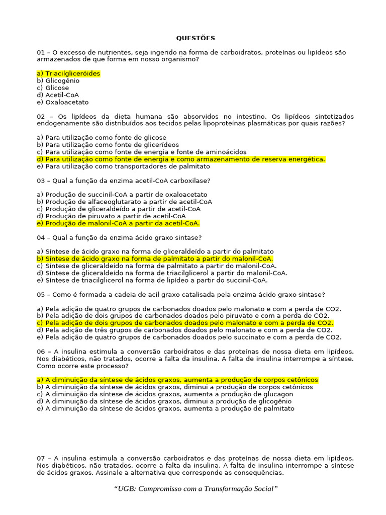07 – A insulina estimula a conversão carboidratos e das proteínas de nossa dieta em lipídeos.