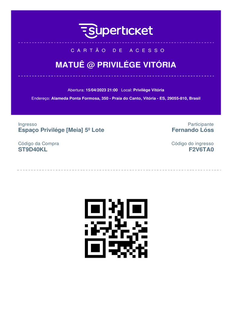 Você está recebendo apenas um ingresso da compra F2V6TA0. Este ingresso