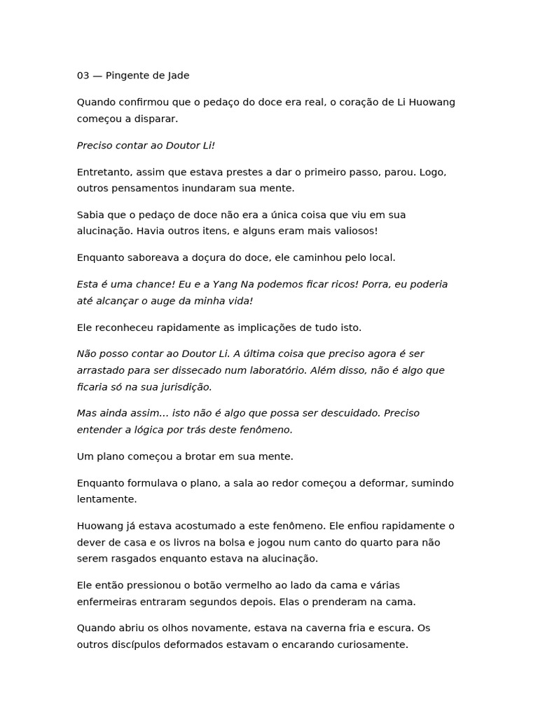 tempo, uma voz suave surgiu: — Discípulo Li, volte a trabalhar rápido ou