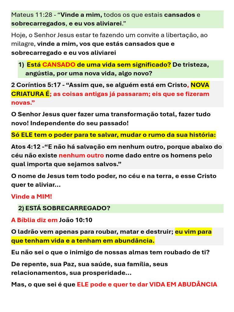 - “Vinde a mim, todos os que estais cansados e sobrecarregados, e
