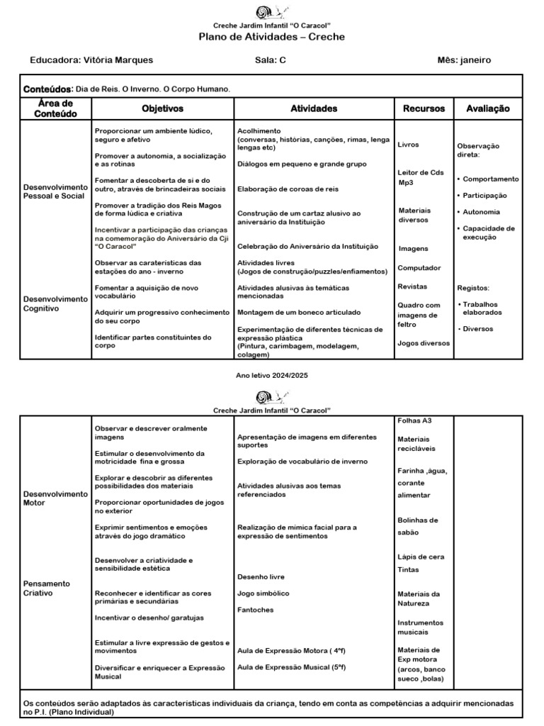 Plano de Atividades – Creche