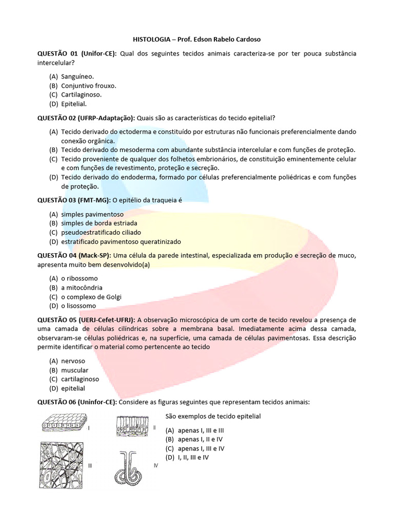 QUESTÃO 06 (Uninfor-CE): Considere as figuras seguintes que representam tecidos animais: