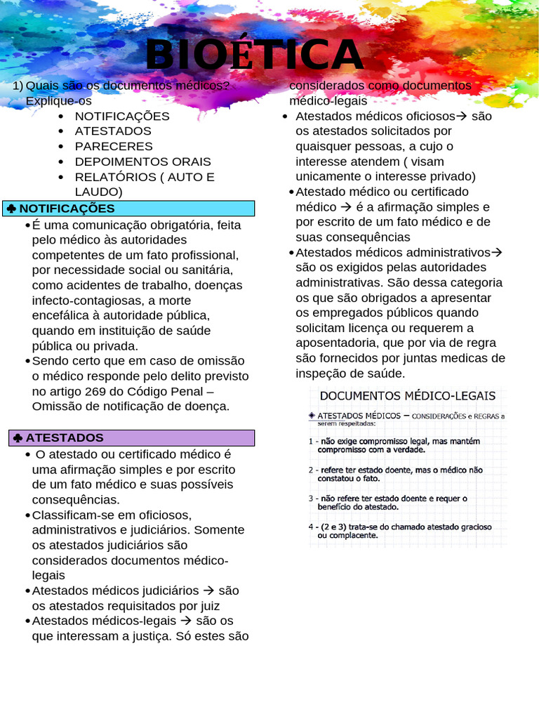 perícia extrajudicial. É um documento 2) Qual a diferença entre atestado