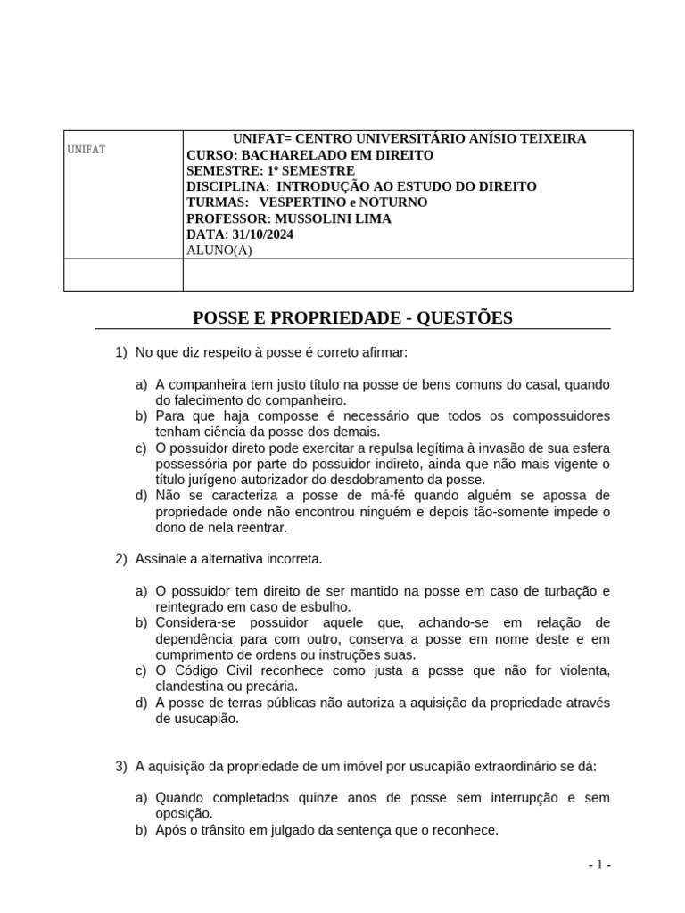 POSSE E PROPRIEDADE - QUESTÕES