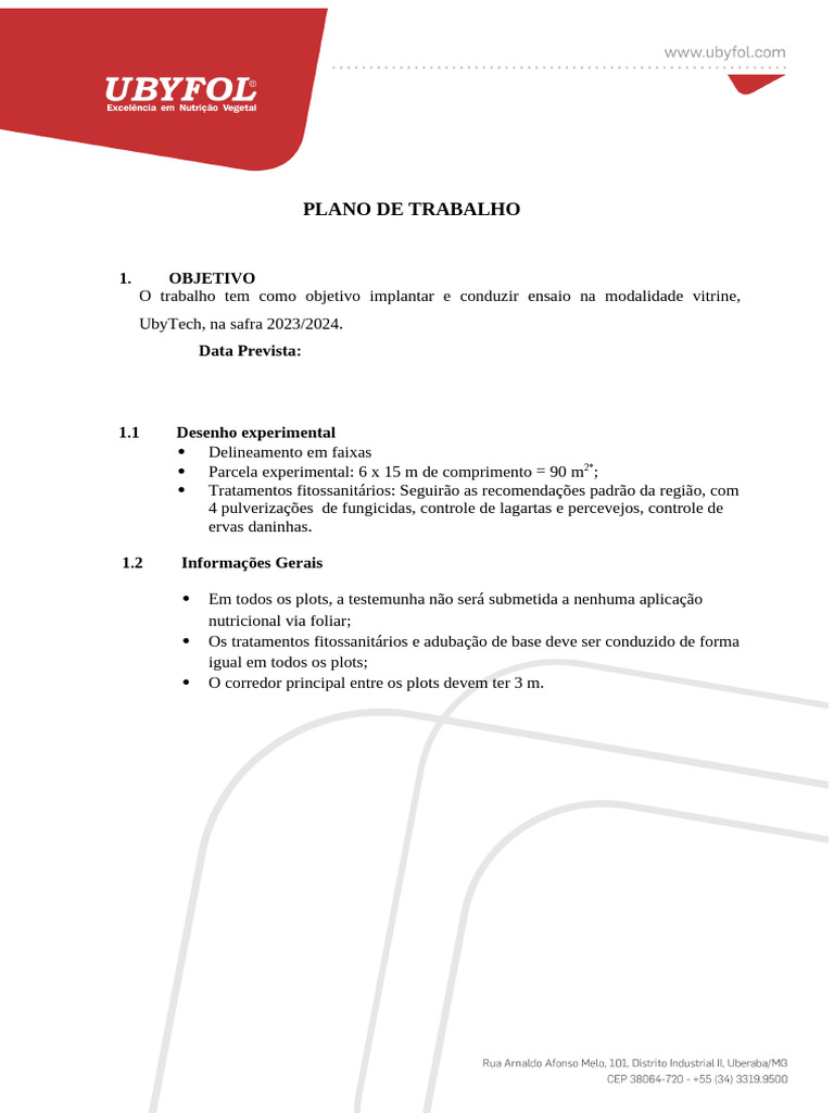 O trabalho tem como objetivo implantar e conduzir ensaio na modalidade vitrine,