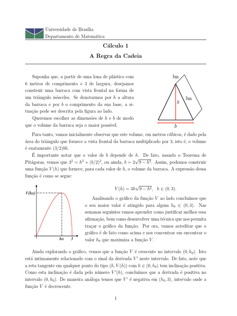 uma função V (h) que fornece, para cada valor de h, o volume da barraca. A expressão dessa