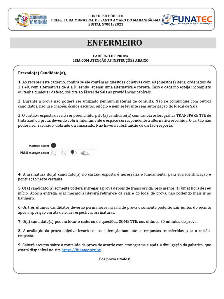 Concurso Público da Prefeitura de Santo Amaro do Maranhão – MA Cargo: ENFERMEIRO