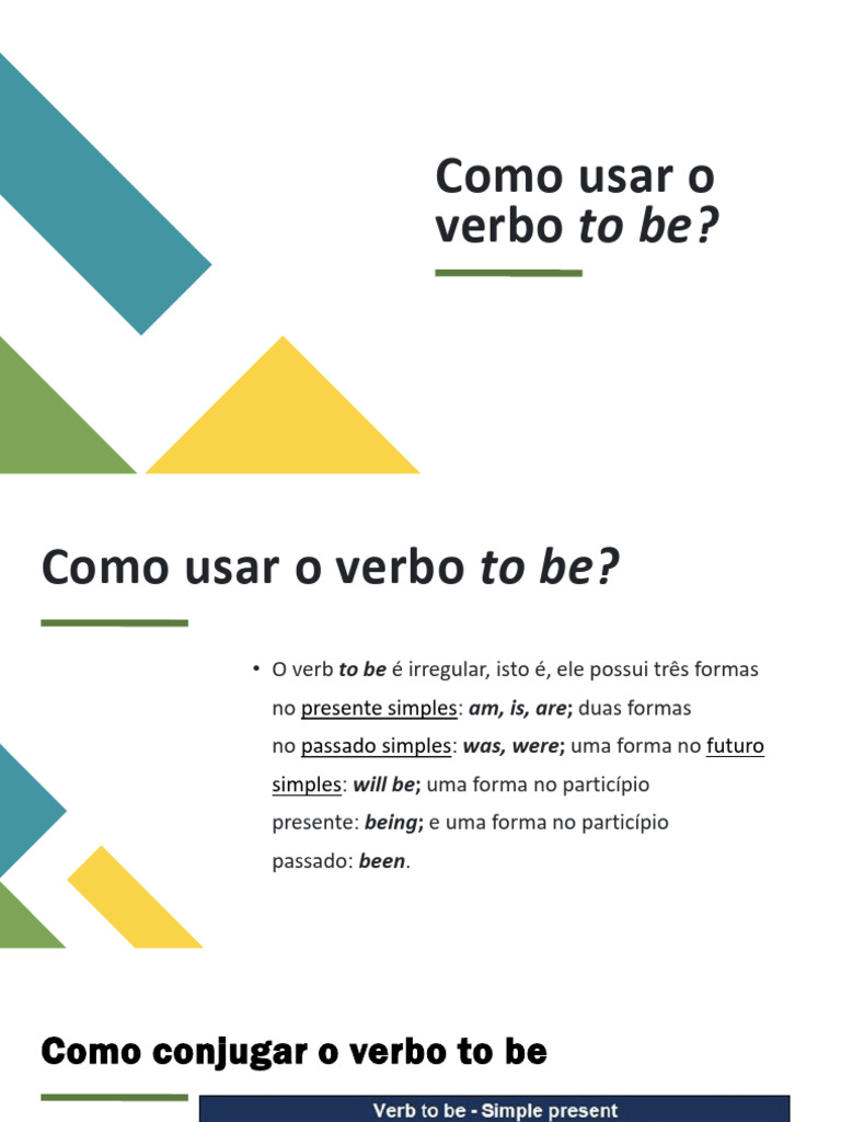 Como conjugar o verbo to be