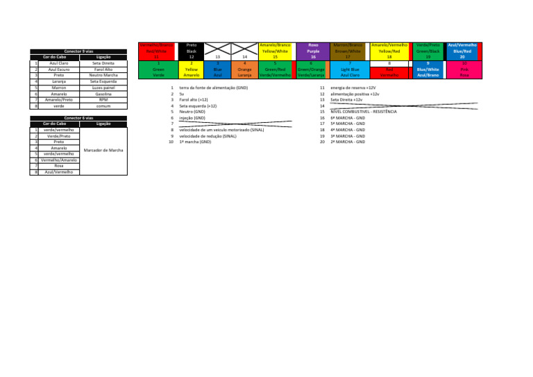 6 Amarelo Gasolina 2 5v 12 alimentação positiva +12v
