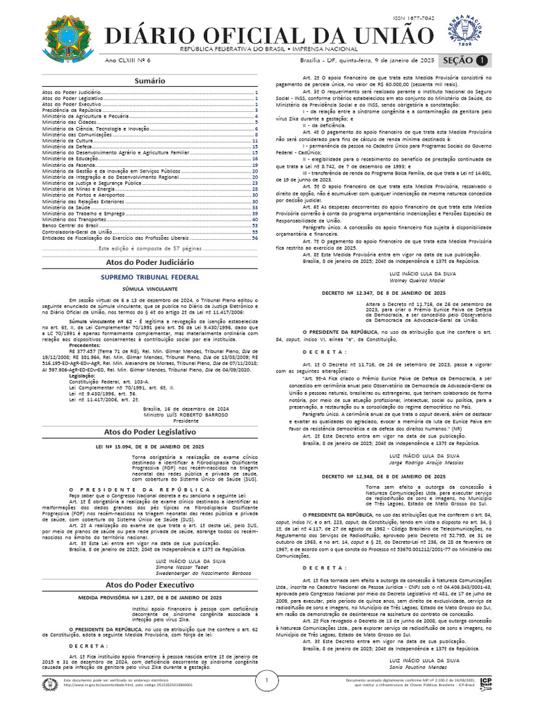 DECRETO Nº 12.351, DE 8 DE JANEIRO DE 2025 Nacional, nos termos do disposto no art. 223, § 3º, da Constituição.