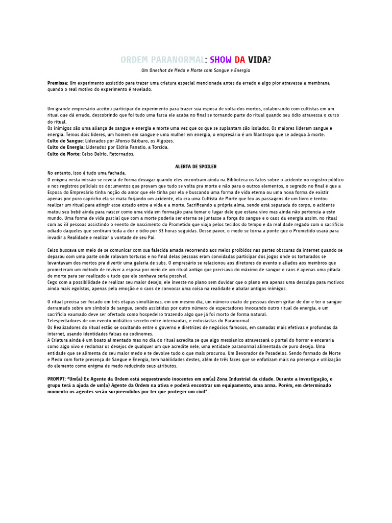 tempo real dessa história que se passa no universo de Ordem Paranormal, do Cellbit