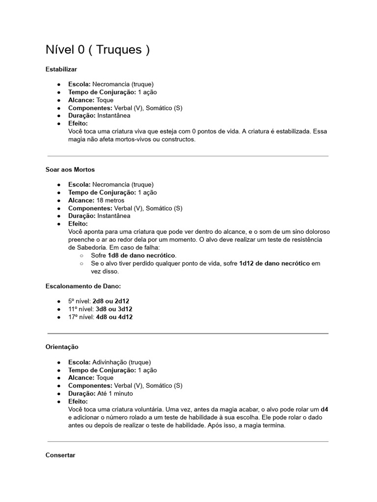 ● Em Níveis Superiores: Para cada espaço de magia acima do 1º nível, a cura aumenta em