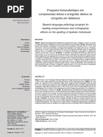 Dislexia Objetivo: Elaborar um programa terapêutico fonoaudiológico e verificar seus efeitos na compreensão de