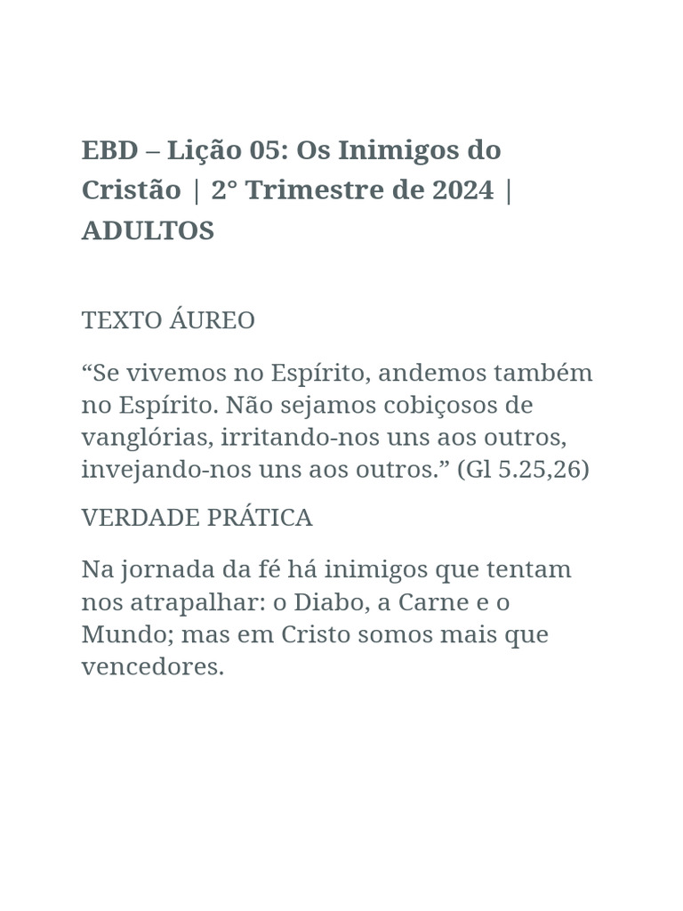 EBD – Lição 05: Os Inimigos do